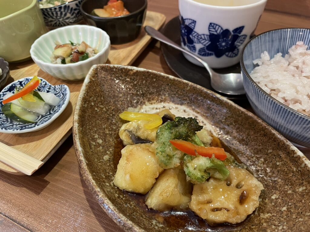メインは私は白身魚と野菜の甘酢あんかけにしましたが、白身魚がふわっふわで美味しすぎました✨