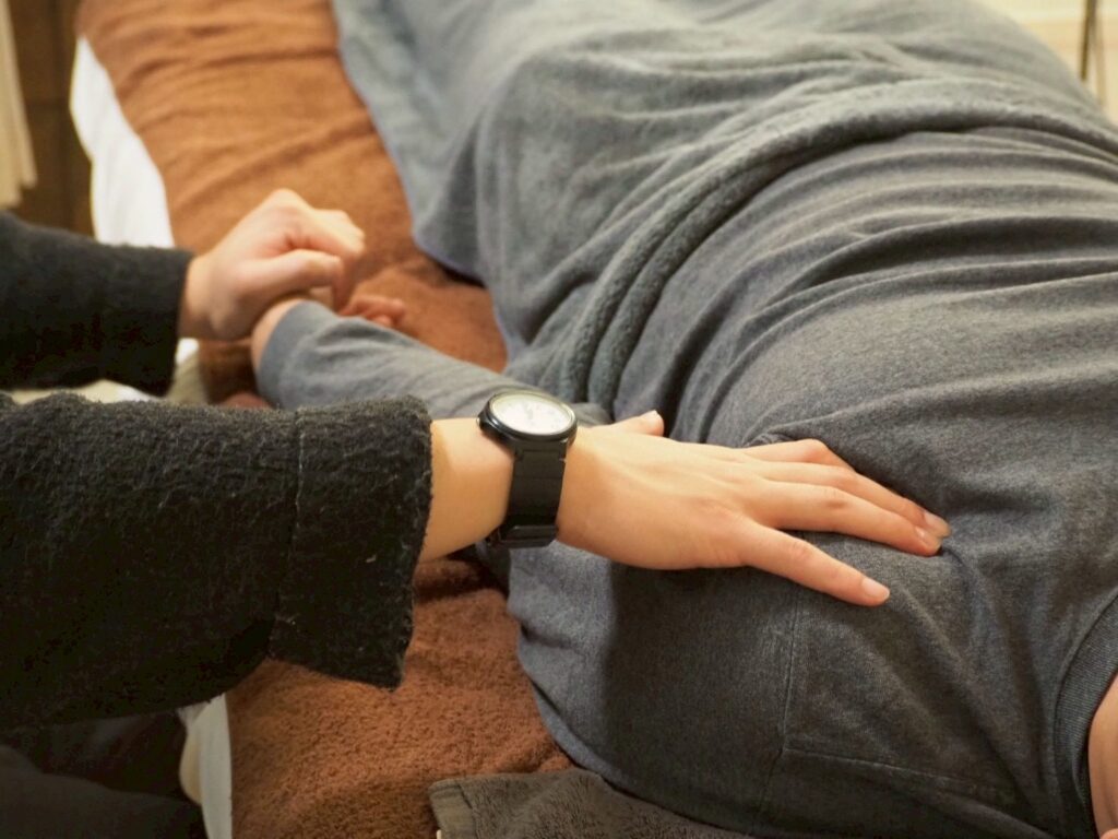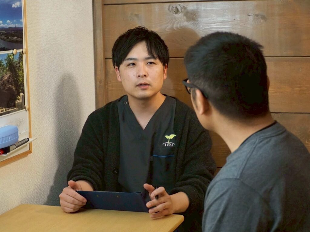 その後、柔道整復師・鍼灸師の国家資格を持つ院長が、今までの知識と経験をもとにお客様の身体をみて、施術してくれるという流れです。